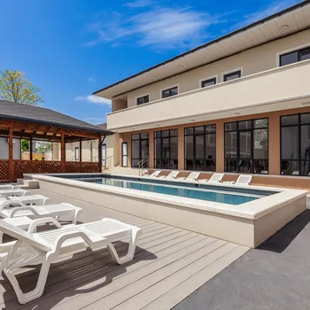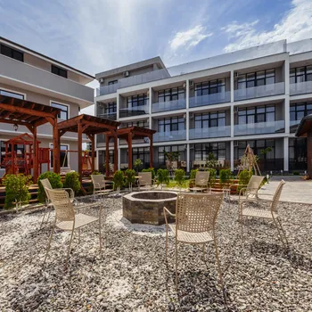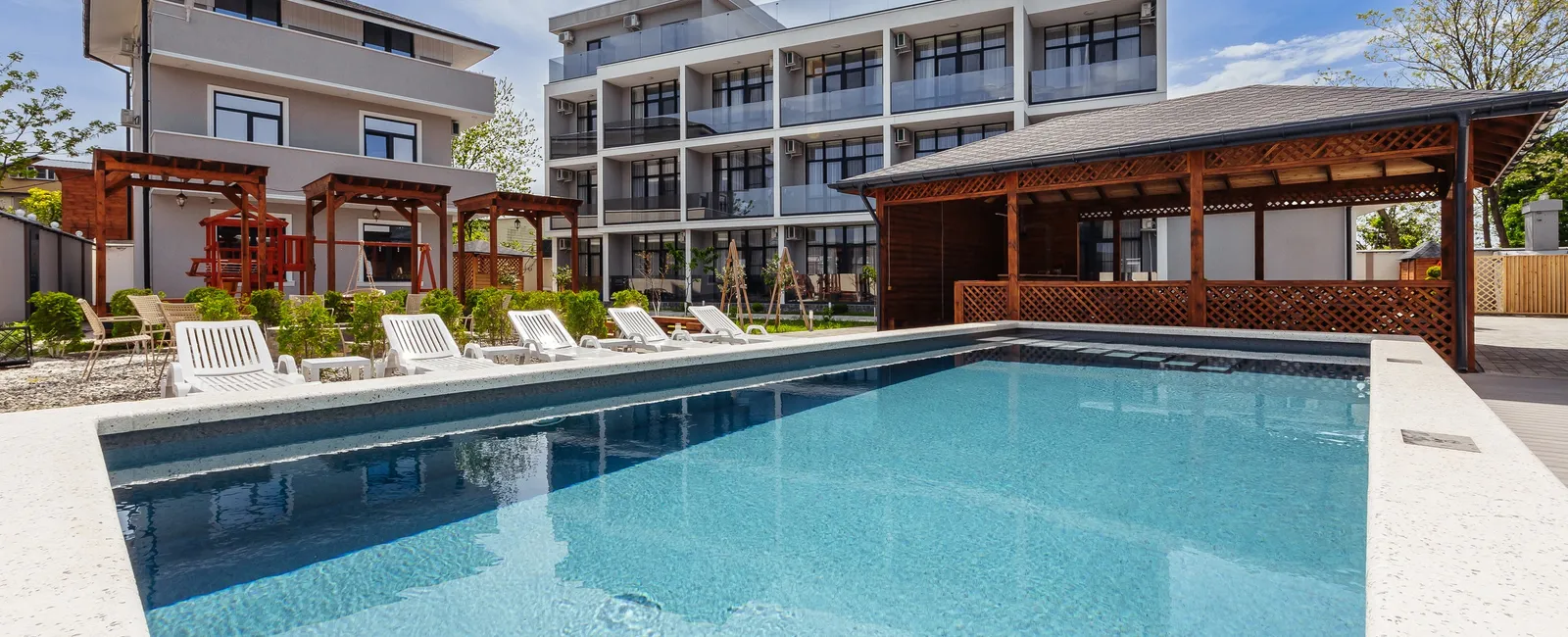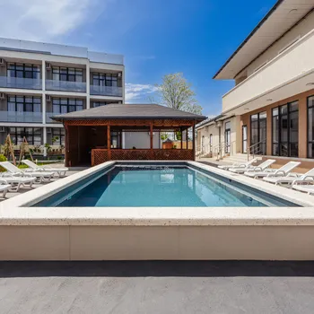 Гостей ждут комфортные и стильные номера со всеми удобствами: кондиционер, Wi-Fi, телевизор, холодильник и удобная мебель. На территории отеля есть бассейн, зона отдыха, терраса, кафе и мангальная зона, где можно приятно провести вечер с семьёй или друзьями.